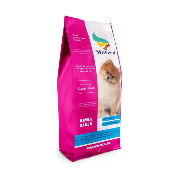 سگ های کوچک نسبت به سگ های بزرگ به انرژی بیشتری نیاز دارند و سریع تر به وزن کامل می رسند همچنین طول عمر آنها نیز بیشتر است . تغذیه سگ های کوچک با جیره بالانس شده با عناصر باکیفیت بالا و تازه یک استاندارد طلایی است،غذای خشک(MOFEED)غنی شده با ویتامین ها و مواد معدنی ، به گونه ای فرموله شده است که نیاز های تغذیه سگ های کوچک را در تمام مراحل زندگی تامین کرده و با هضم آسان و محافظت از دستگاه گوارش یک رژیم غذایی سالم و کامل را فراهم میکند.