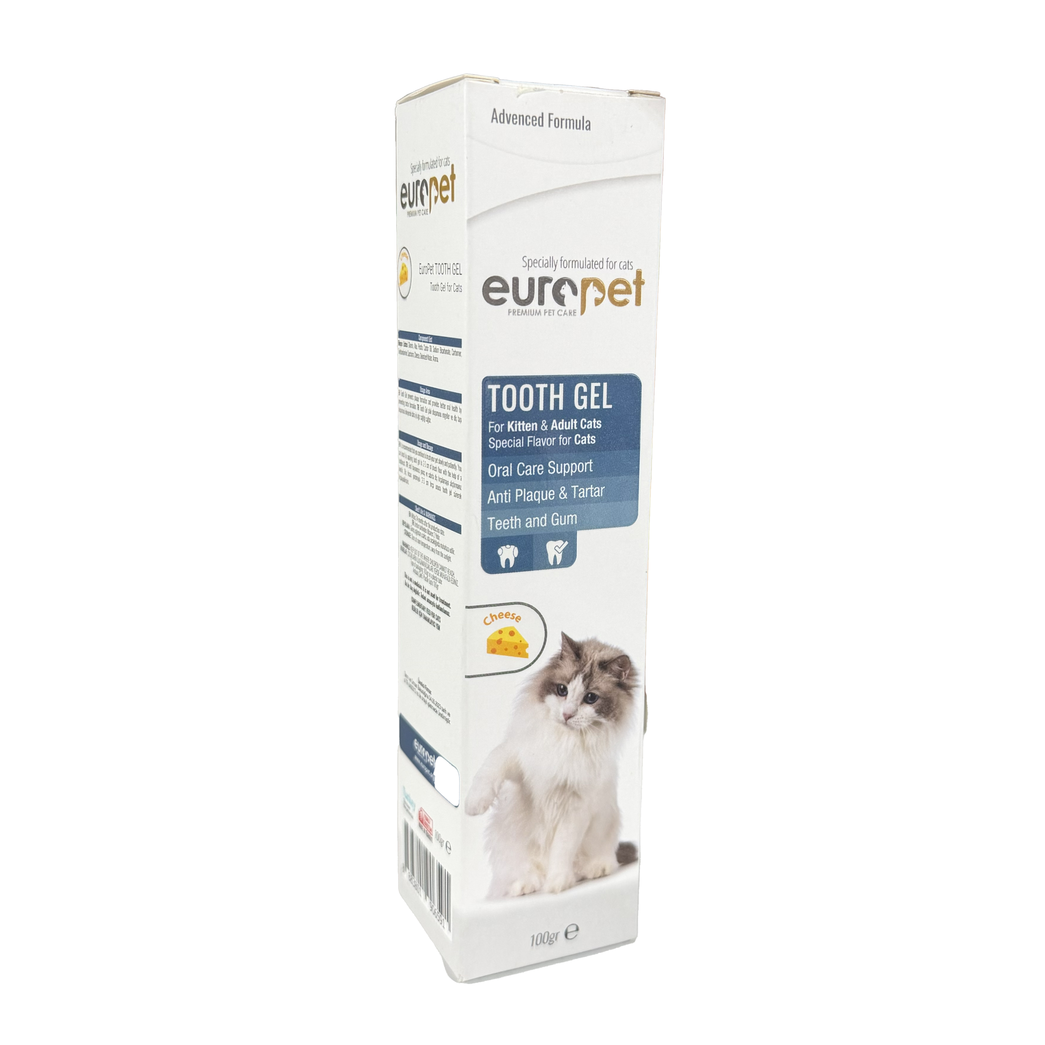 خمیر دندان ژله ای گربه محصول شرکت یوروپت ترکیه برای بچه گربه و گربه بالغ با طعم پنیر بسته بندی ۱۰۰ گرمی