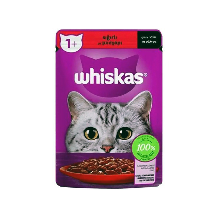 پوچ گربه ویسکاس طعم گوشت گوساله در سس وزن ۸۵ گرم